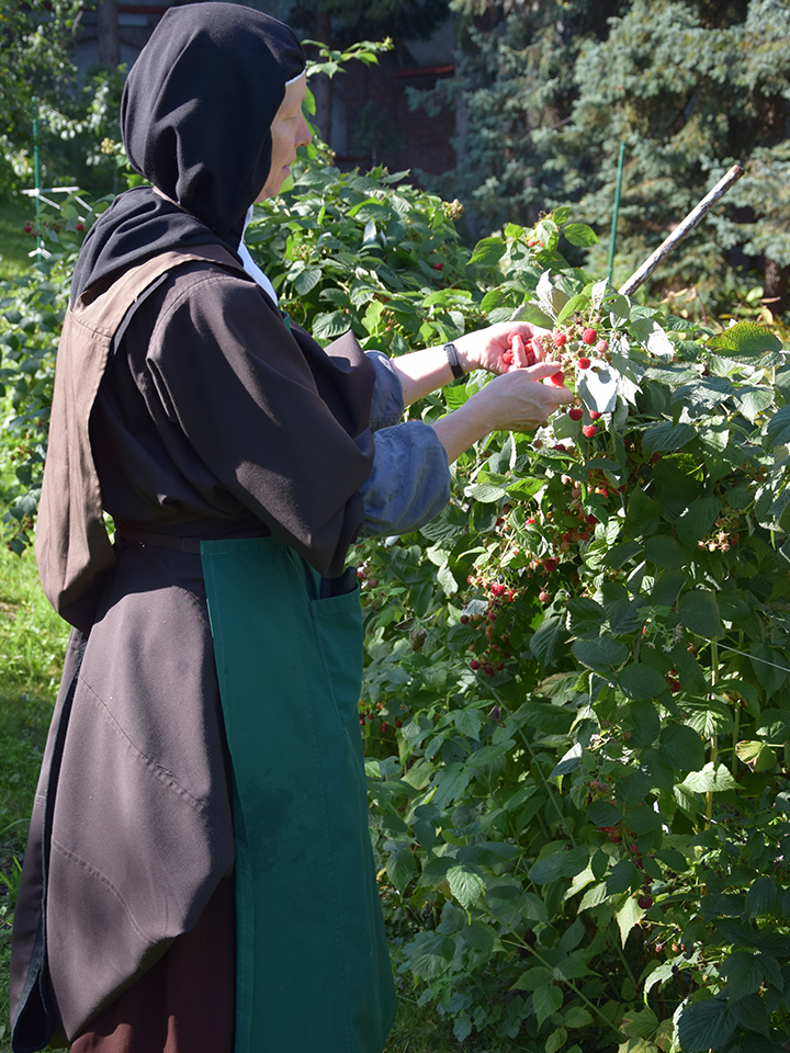 Praca fizyczna zajmuje ważne miejsce w naszym przeżywaniu codzienności. Przez nią solidaryzujemy się ze wszystkimi ubogimi, którzy pracują na własne utrzymanie. Pomaga w skupieniu i trwaniu sercem przy Panu, dlatego też prace, które wykonujemy są proste, zwyczajne, a zarazem niezbędne do normalnego funkcjonowania klasztoru. Mimo tego utrzymujemy się przede wszystkim z ofiar ludzi.