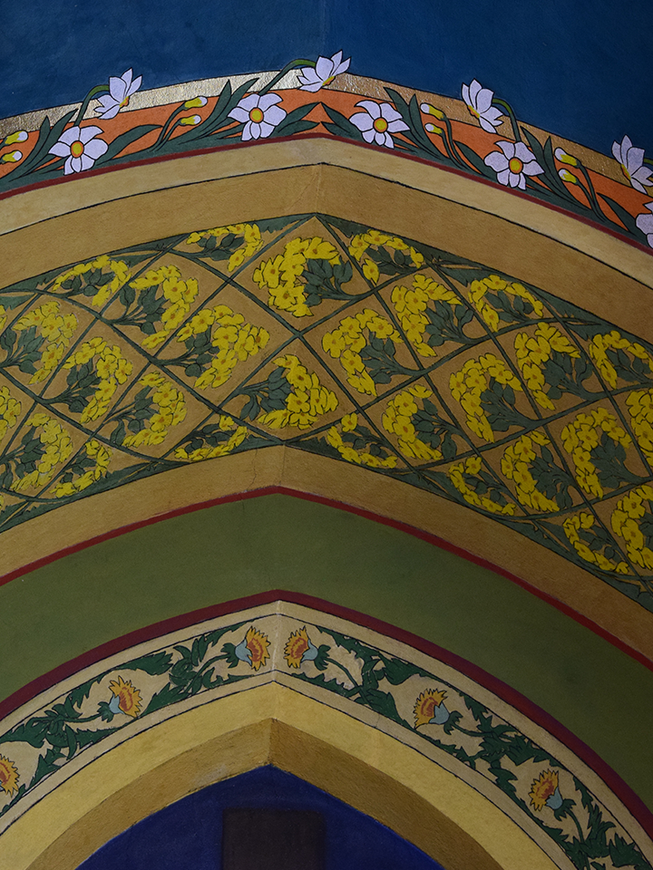 Polichromię kościoła wykonał w 1902 roku p. Tadeusz Popiel, przyjaciel ks. Wiejowskiego. Artysta przy okazji prac w archikatedrze przemyskiej obiecał wymalować siostrom kościół za darmo. Postawił jednak warunek, że zrobi to według swojego projektu. Pan Popiel pokrył polichromią całe wnętrze świątyni z charakterystyczną dla epoki Młodej Polski bujnością barw i dekoracyjnością. Kościół jest więc ozdobiony polnymi kwiatami, które wraz z ornamentami bardziej abstrakcyjnymi tworzą na ścianach prawdziwy ogród. Przywołując obraz znanych, wspaniałych polichromii – choćby stworzonych przez Stanisława Wyspiańskiego – pomysł nie był pionierski ani przełomowy. Wykonany w kościele karmelitańskim idealnie wpisał się za to w fakt, że słowo karmel oznacza ogród. Wpatrując się w dzieło p. Popiela można mieć poczucie bycia częścią biblijnego poematu Pieśni nad Pieśniami…