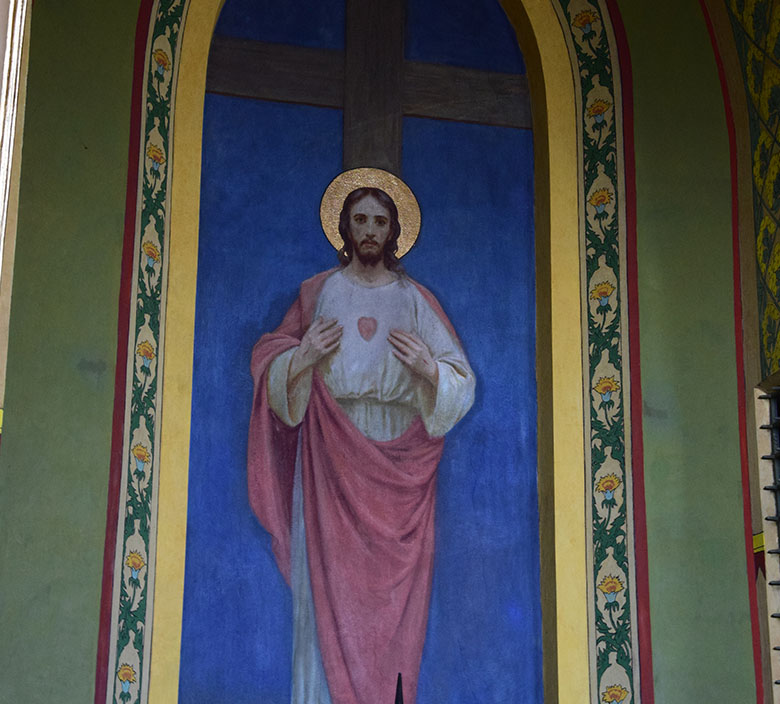 Według przekazów z kroniki klasztornej, w centralnej części kompozycji w prezbiterium Maryja wniebowzięta przybrała twarz żony artysty, a anioły mają twarze jego dzieci. Również ks. Wiejowski został uwieczniony wśród postaci adorujących Maryję, użyczając twarzy mężczyźnie w białej szacie, na skraju kompozycji z prawej strony malowidła.