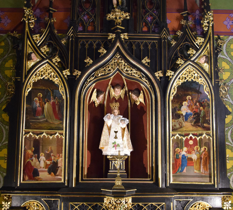 W latach 1902-1912 pracownia Ferdynanda Majerskiego stopniowo wykonywała wyposażenie wnętrza. Ołtarz główny, dwa ołtarze boczne: Matki Bożej Szkaplerznej i Dzieciątka Jezus oraz trzeci: ołtarz św. Teresy od Dzieciątka Jezus przy chórze muzycznym wykonane zostały z polichromowanego na ciemny brąz drewna, ze snycerskimi elementami złoconymi. Oprócz tego wykonano chór, ambonę, ławki, cztery figury do ołtarza głównego: św. Jana od Krzyża, św. Eliasza, św. Jana Chrzciciela i św. Teresy od Jezusa oraz figury aniołów przy bocznych ołtarzach.